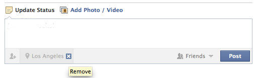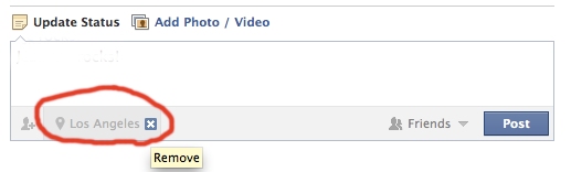 3. Click on that “X” and your status updates will no longer have the location added to them.