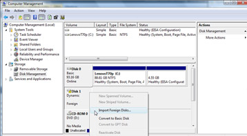 NOTE 3: If you your disk is being classified as “invalid” instead of “foreign,” then you might have it connected via USB, which Windows Vista & 7 do not like. If that’s the case, then find a way to connect it directly via SATA or IDE (depending on what kind of drive it is), and then it should show up as a foreign drive and you can follow the above instructions to import it.